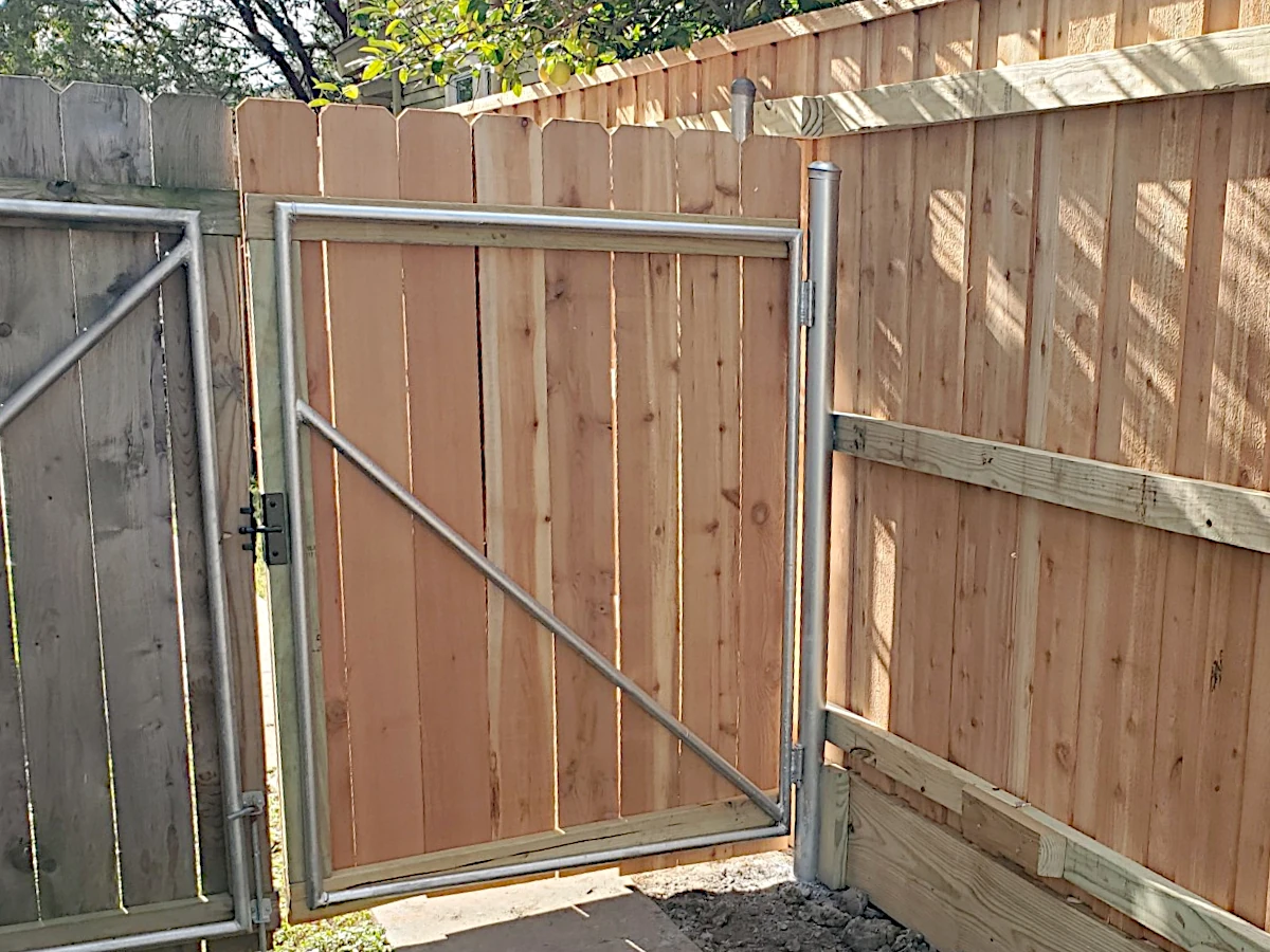 6-foot high western red cedar fence with personnel gate. installed in Arabi, LA. -